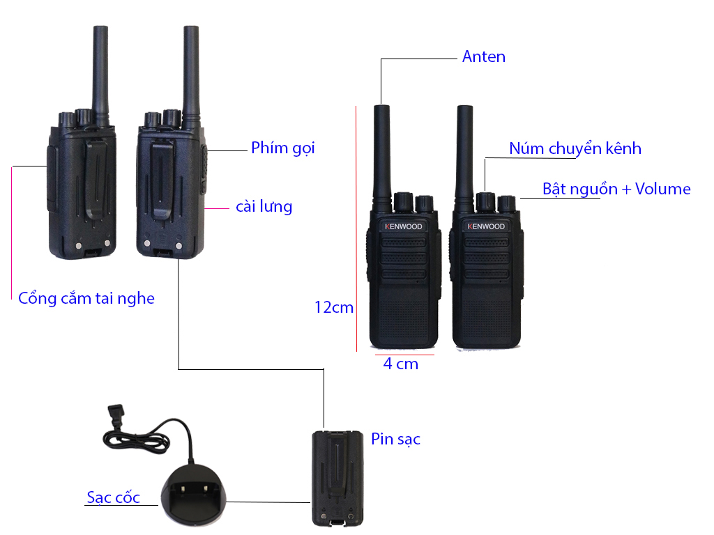 Kenwood TK 508 Plus được tang bị tần số UHF 400-480mHz, công suất thu phát 5W cho khoảng cách liên lạc 1200m... Pin lion 4500mAH sạc nhồi, tôi hy vọng rằng nó là mẫu bộ đàm kenwood đáng để bạn lựa chọn cho công việc phù hợp.