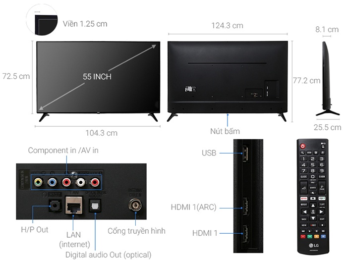 THÔNG SỐ KỸ THUẬT TIVI 55 INCH